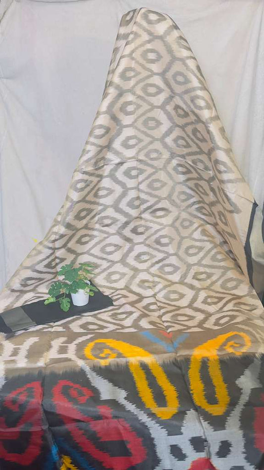 Beige & black pure silk Pochampalli ikkat Handloom Saree