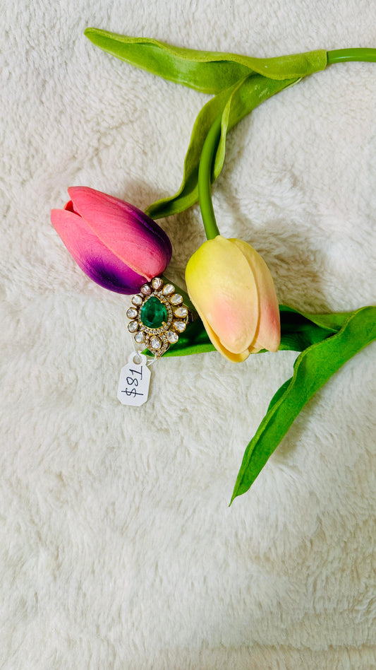 Emerald Green Statement 92.5 silver finger Ring embellished with white semiprecious Stone