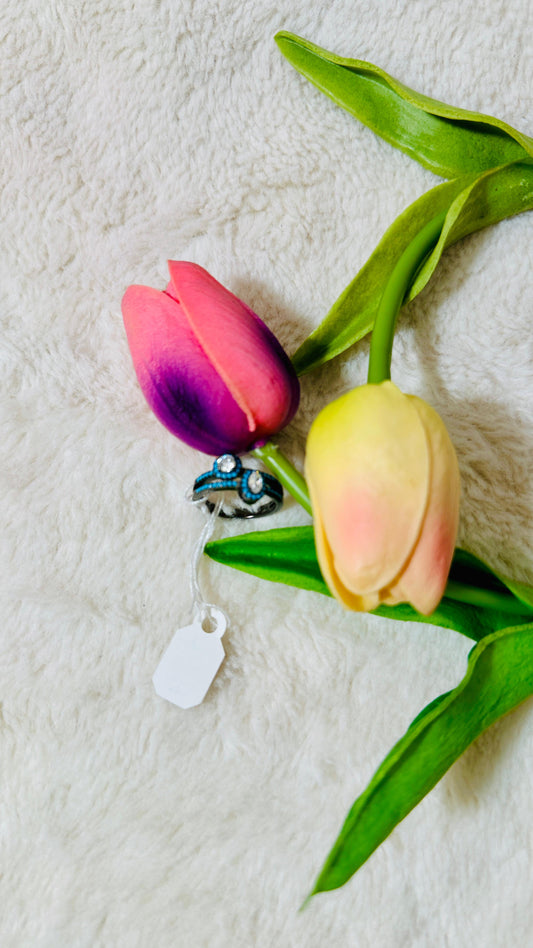 Nano Turquoise Black polish 92.5 silver finger Ring embellished with CZ Stone