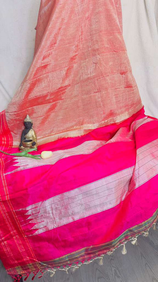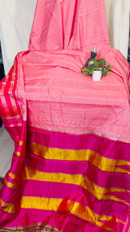 Onion pink with Magenta border pure SICO Ilkal Handloom Saree
