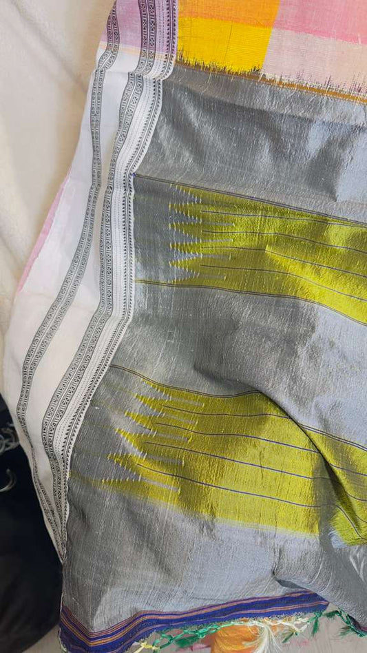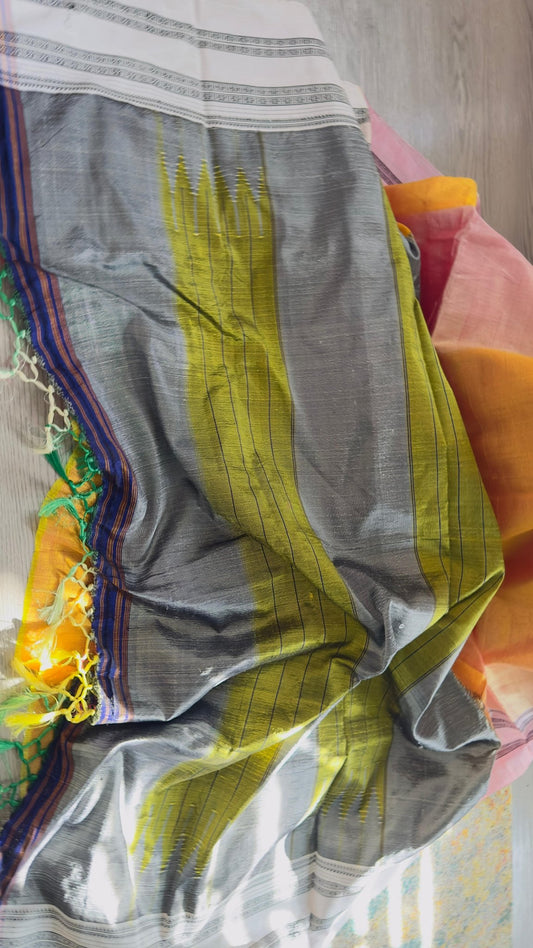 ILKAL Shaded Mustard yellow with baby pink border SICO ( Cotton*Silk ) handloom saree
