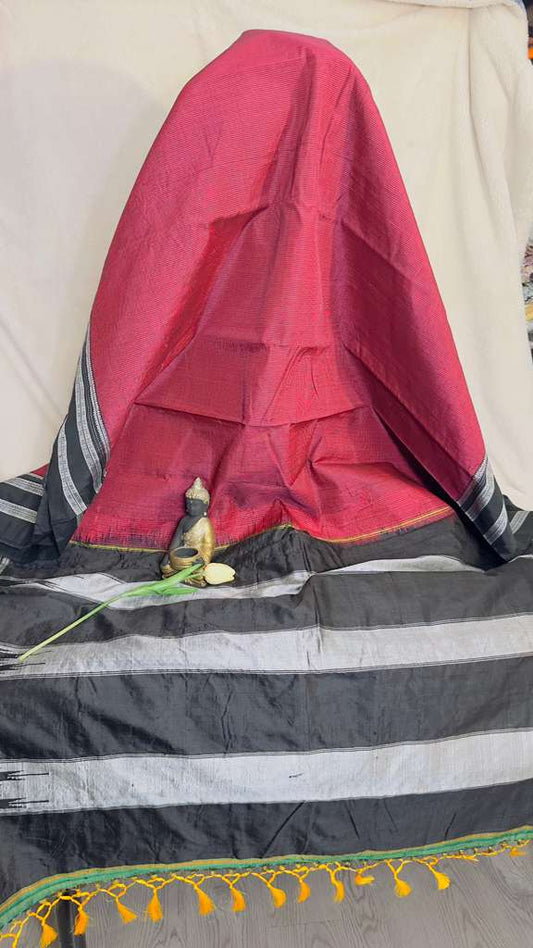Magenta pink with Grey / Black border pure SICO Ilkal Handloom Saree