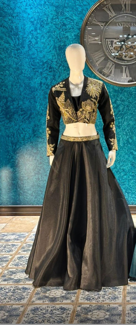 Black designer Lehenga highlighted with all handwork Zardosi, Cutdana