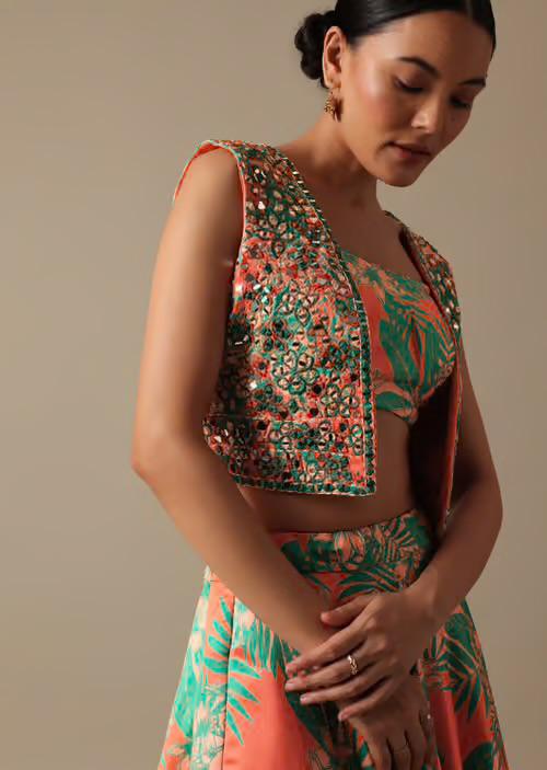 Green designer floral Lehenga with Jacket highlighted with all mirror handwork