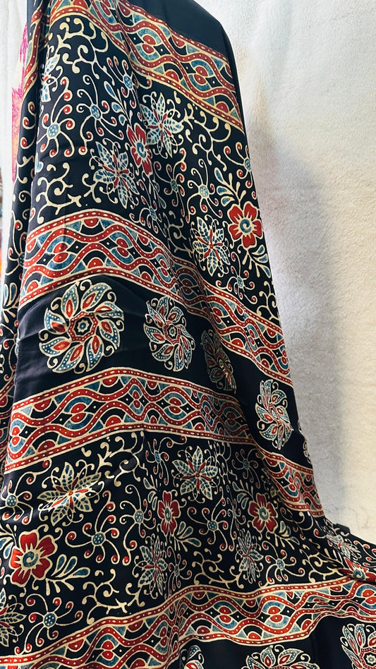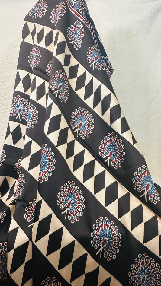 Black*Indigo Rose Ajrakh natural dye Hand block print pure Modal silk saree